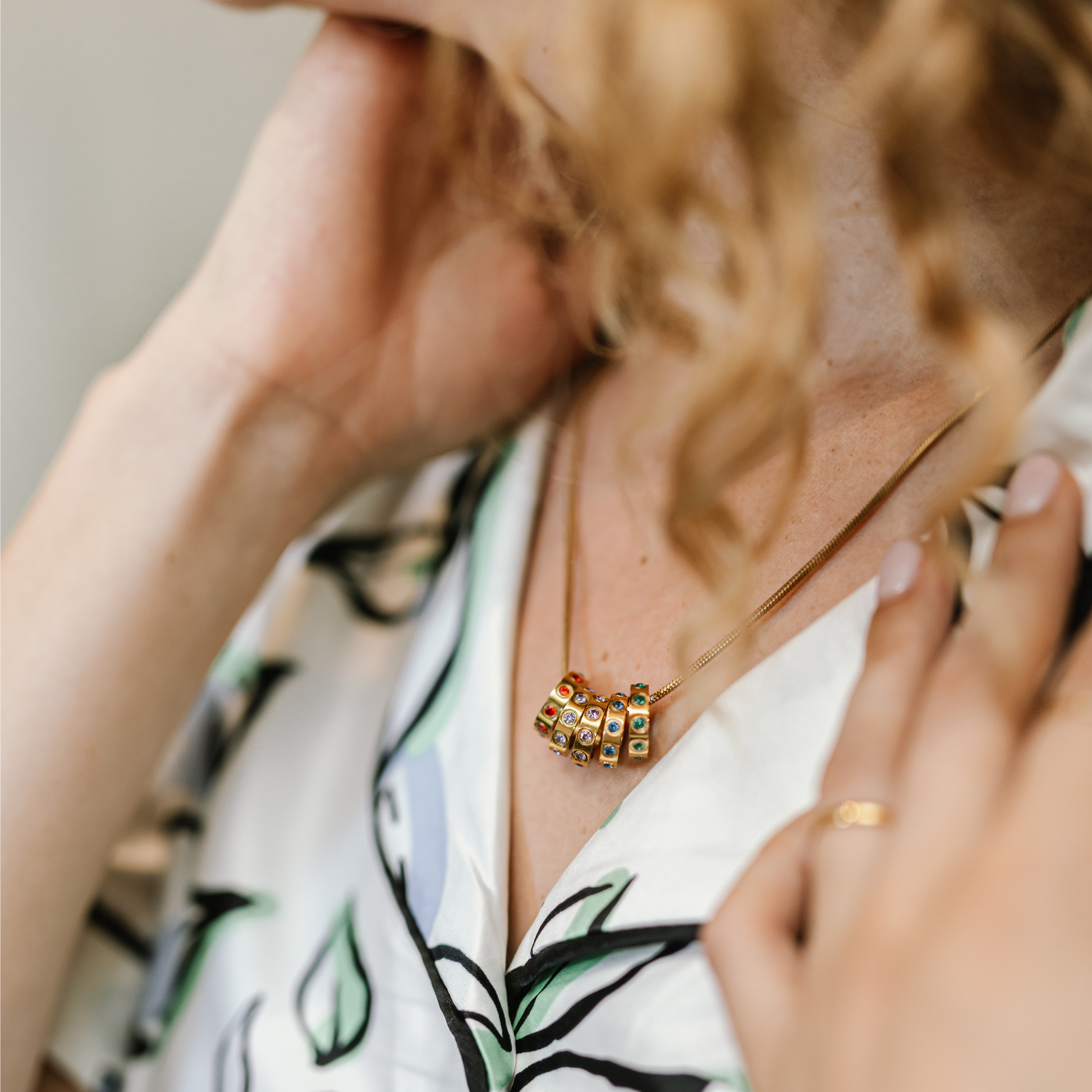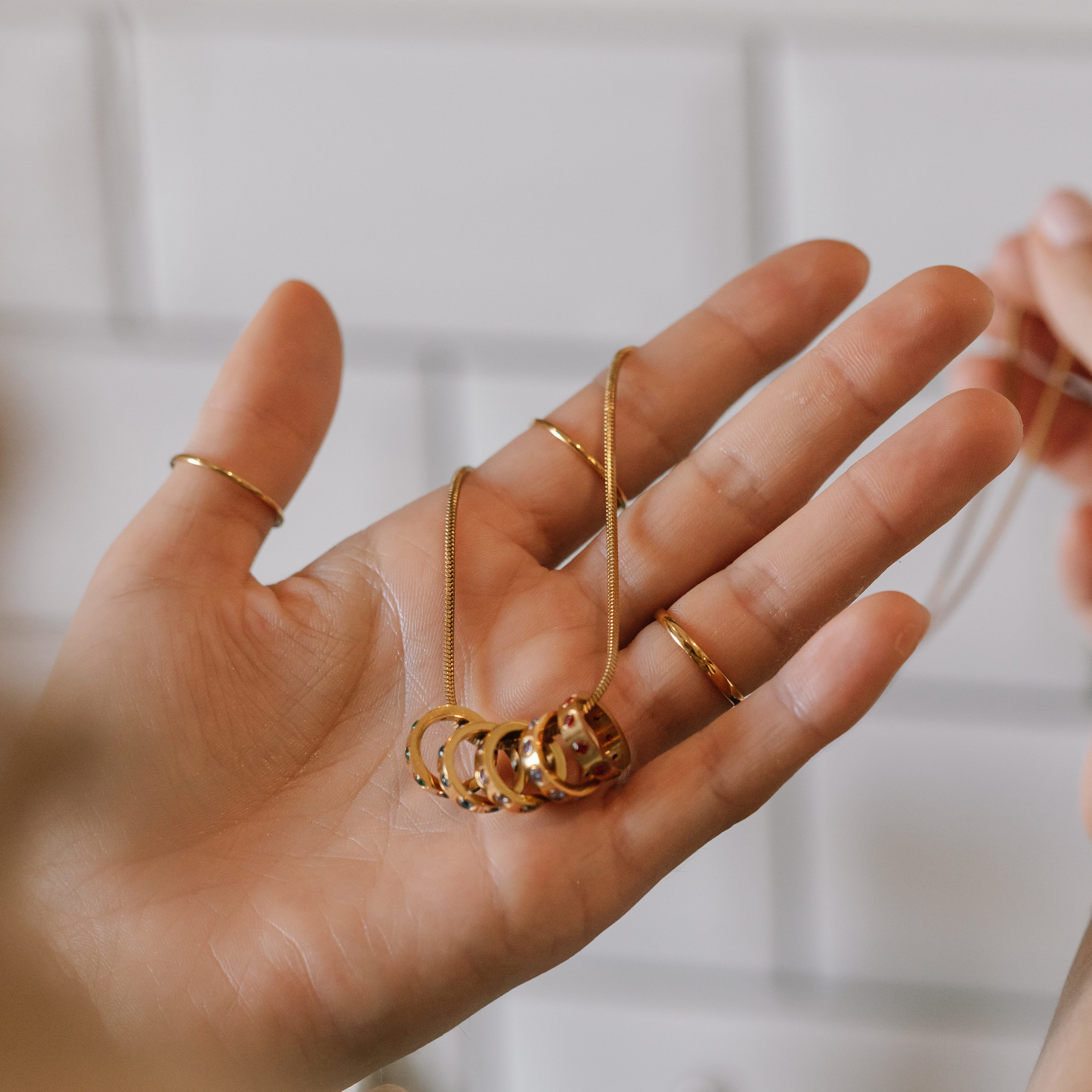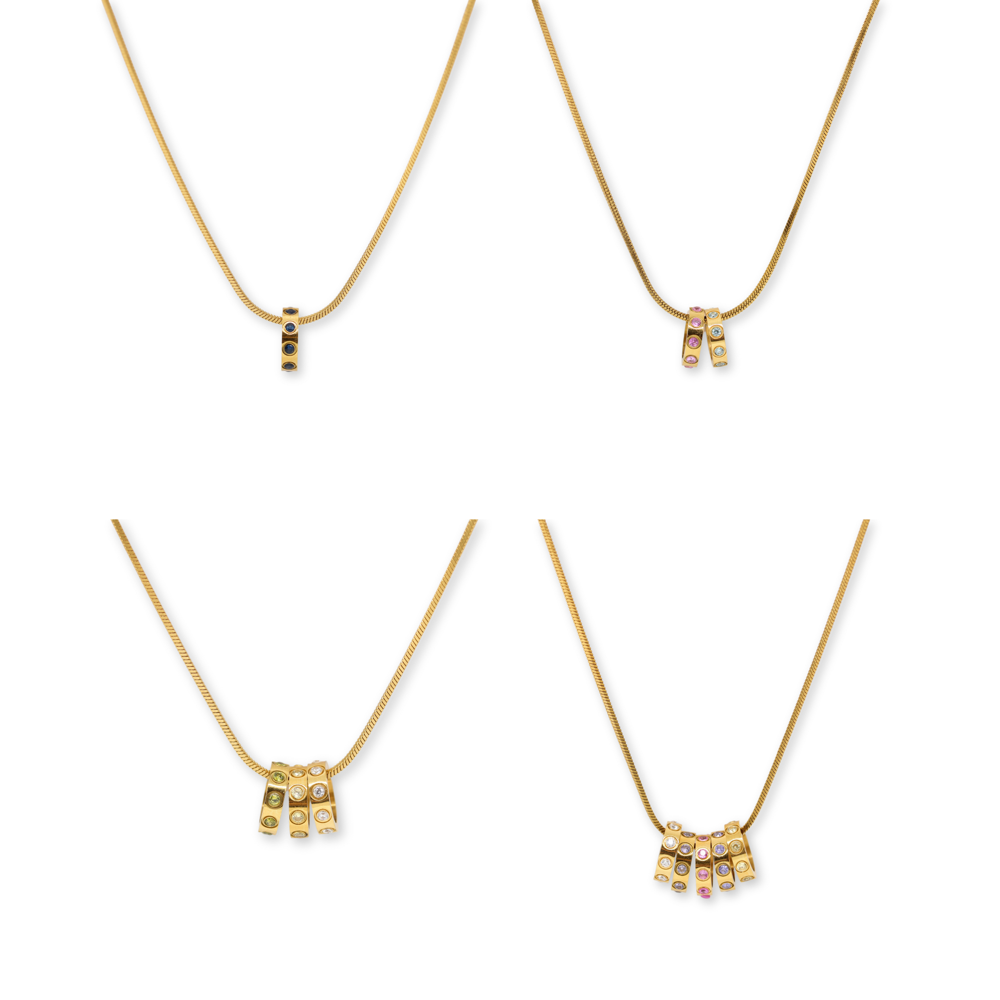 The Extra-Length Snake Chain is their official base, but they also pair beautifully with the 4mm Plain Chain, Dainty Paperclip Necklace, or Slide-On Charm Necklace.