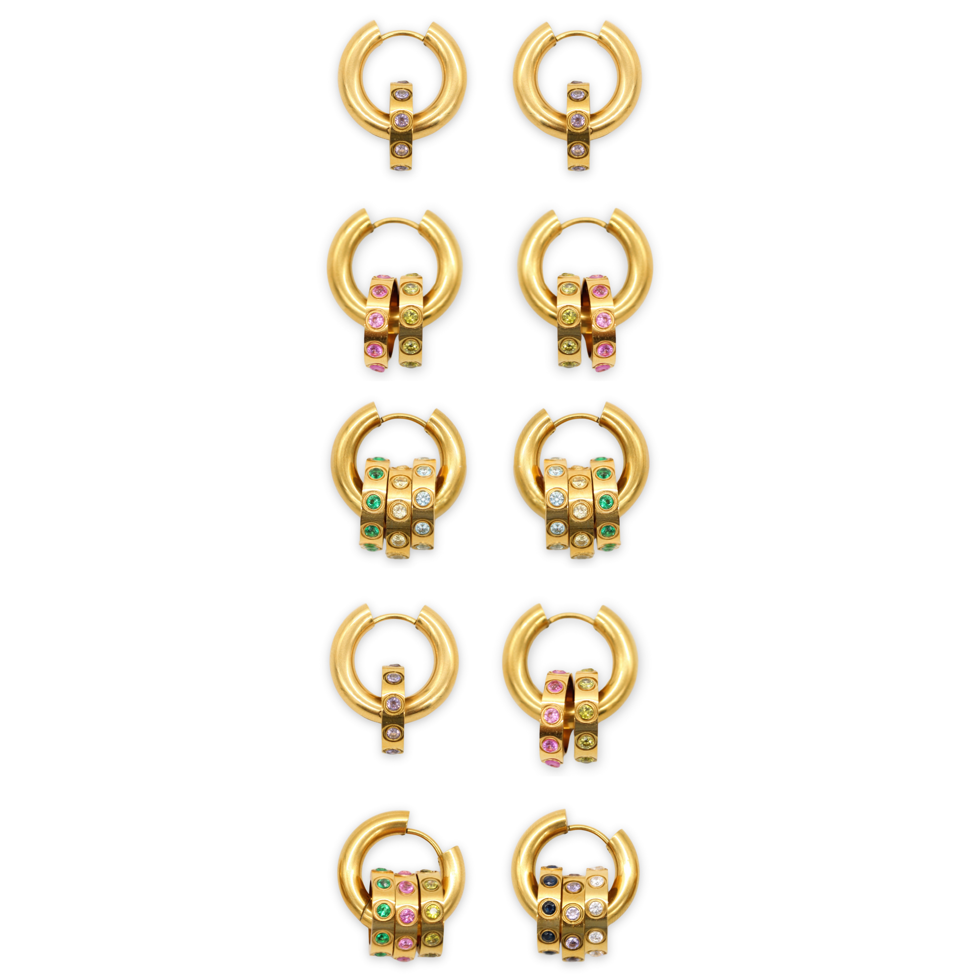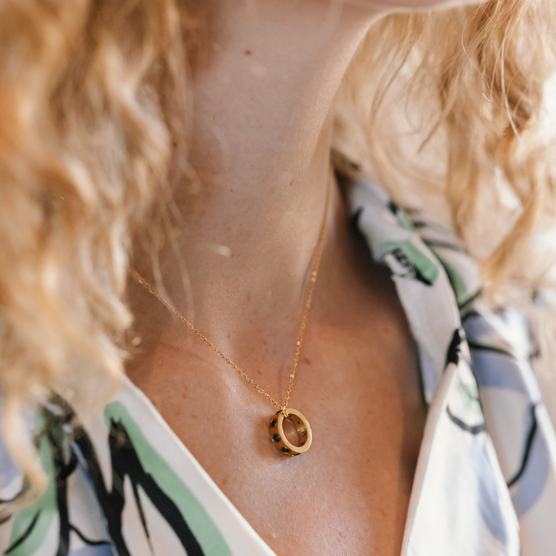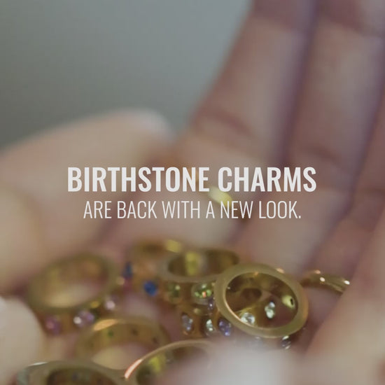 Hoop charms set with round stones all the way around for a bold pop of colour. Wear them on your Everyday Hoops as earring charms or slide them onto a necklace.