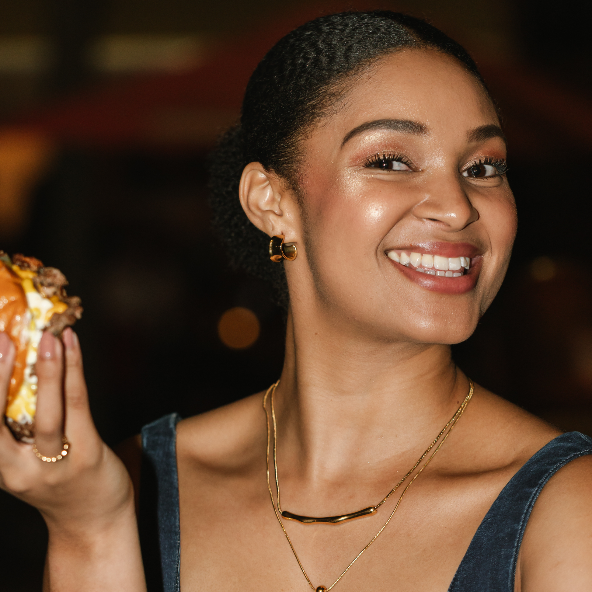 Chunky hoops with an organic, sculptural curve for a bold look. Eye-catching and effortlessly stylish for day or night.