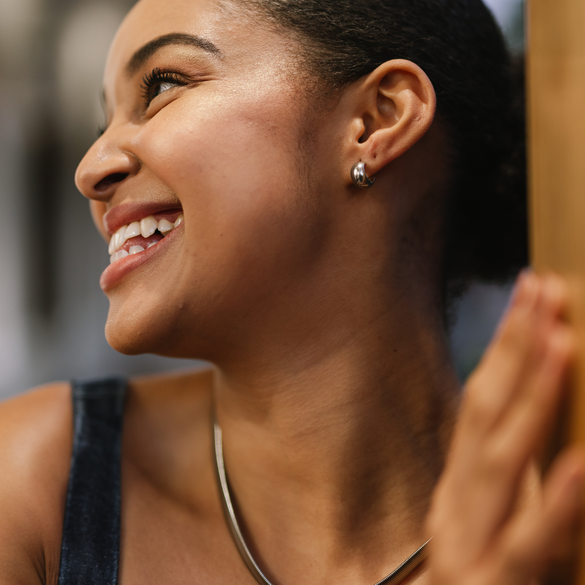 Tiny but impactful, these chunky huggies sit close and hug the ear for a bold, modern look.
