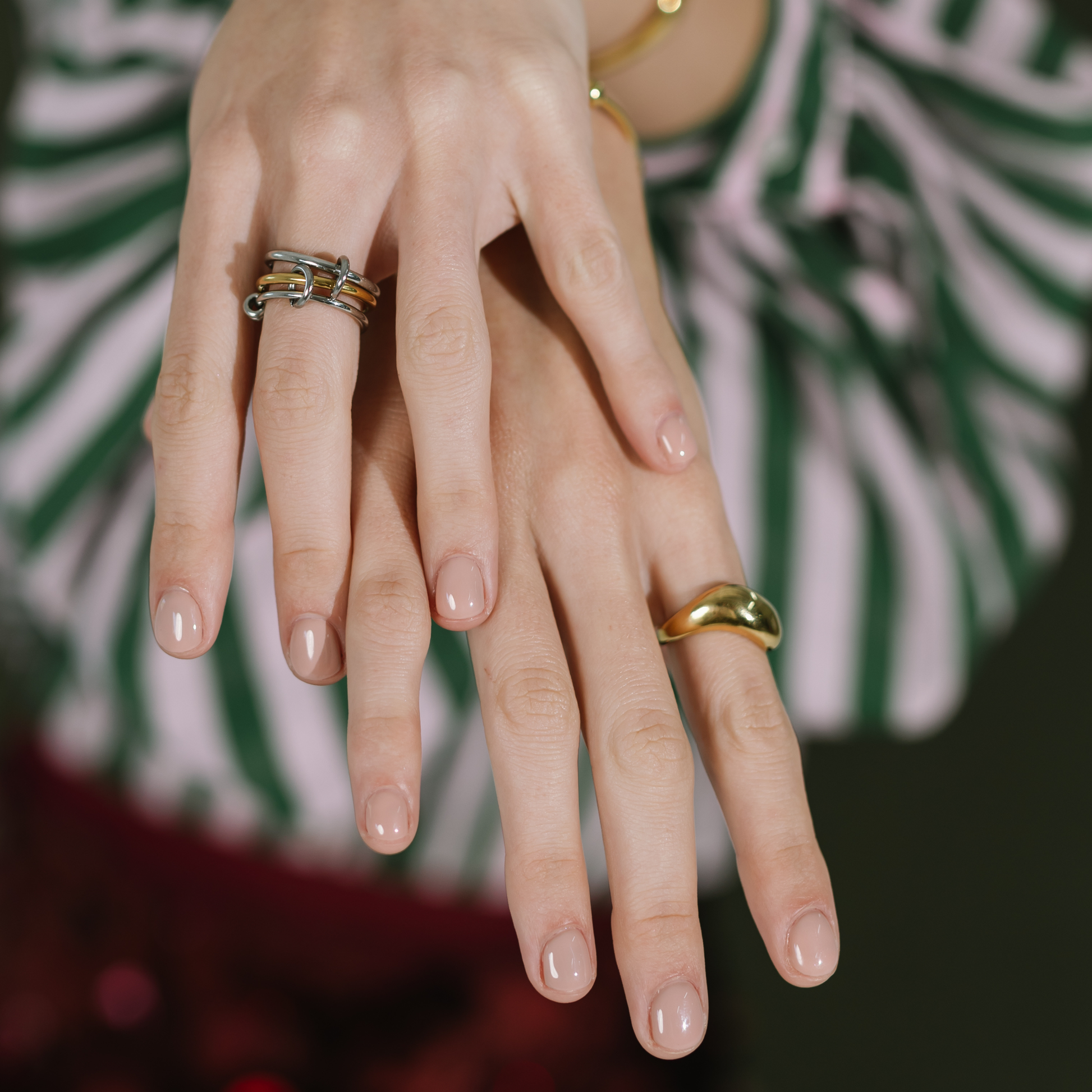 The curved dome silhouette creates a sleek and minimal moment. Its rounded shape adds quiet impact with a subtle statement feel that stays easy to wear.