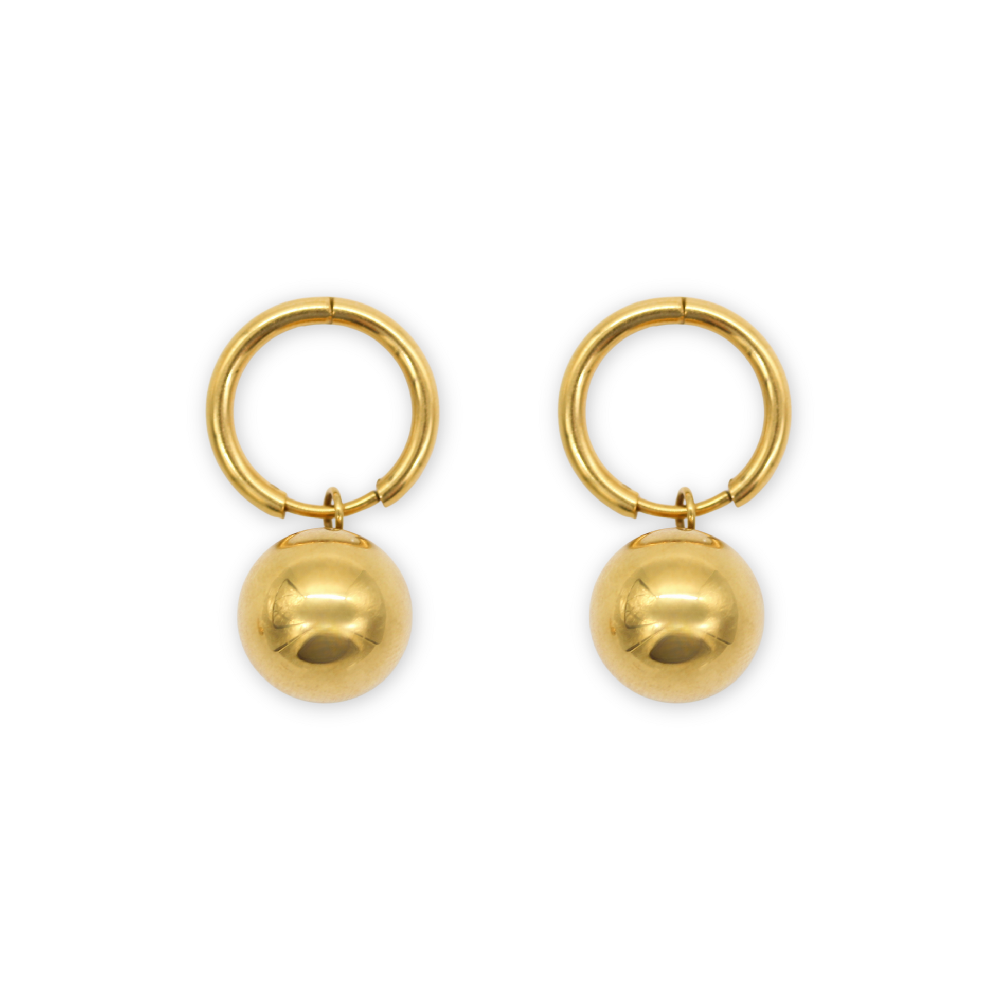 A hinged hoop with a dangling gold ball for a simple statement.