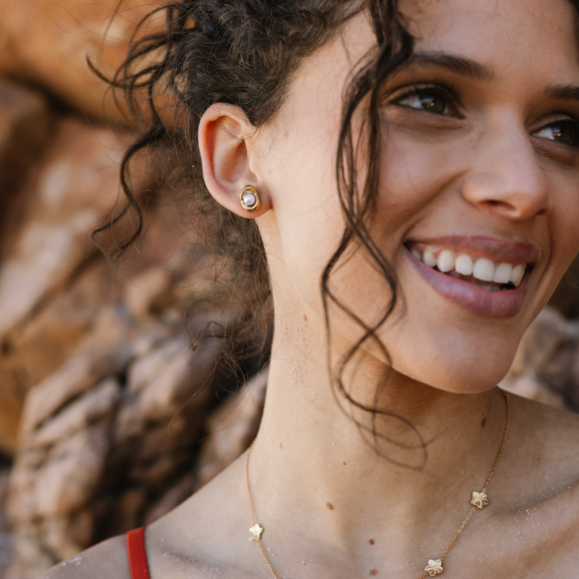 Small but sophisticated, these Oyster studs are inspired by the treasures of the tide and feature a pearl set in gold for understated elegance.