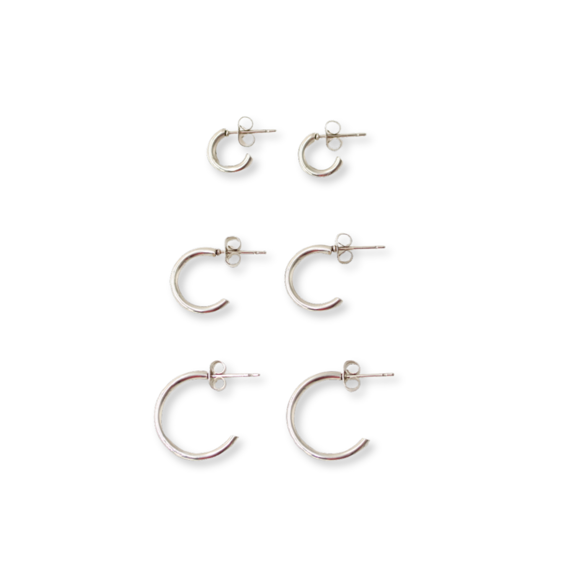 | Meet your classic plain hoops in silver. Made from Titanium Steel.. |