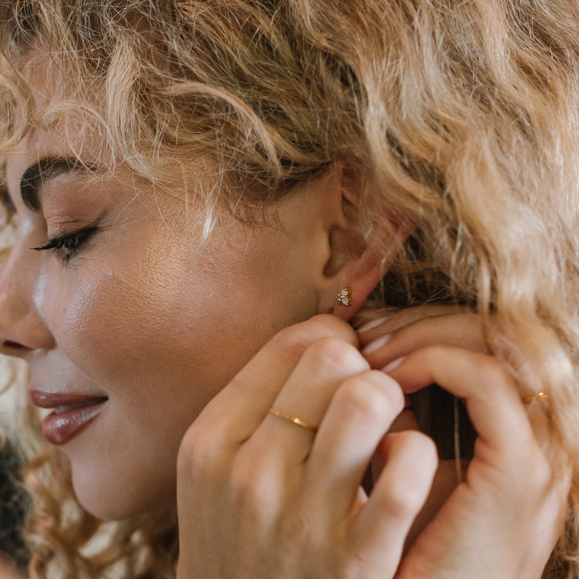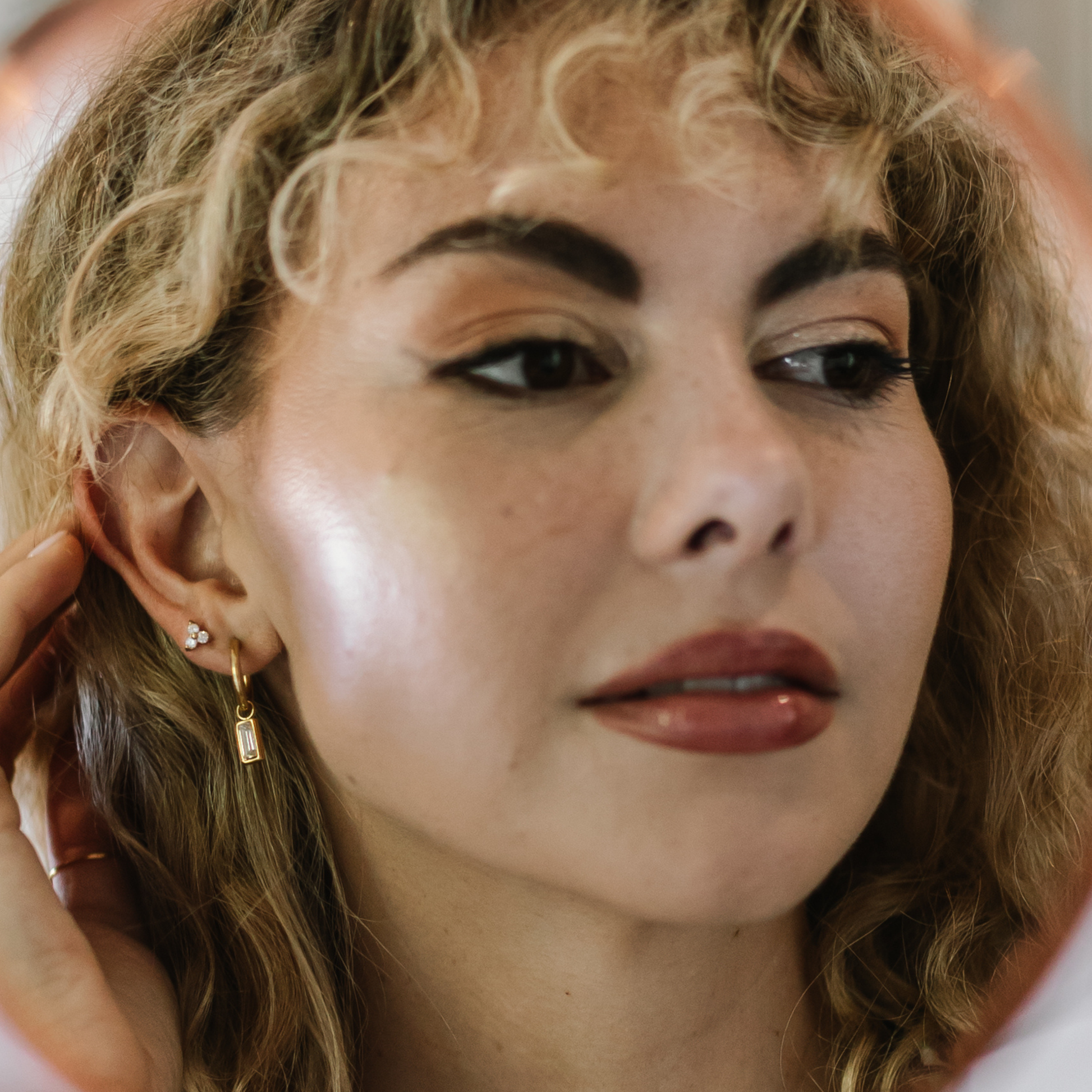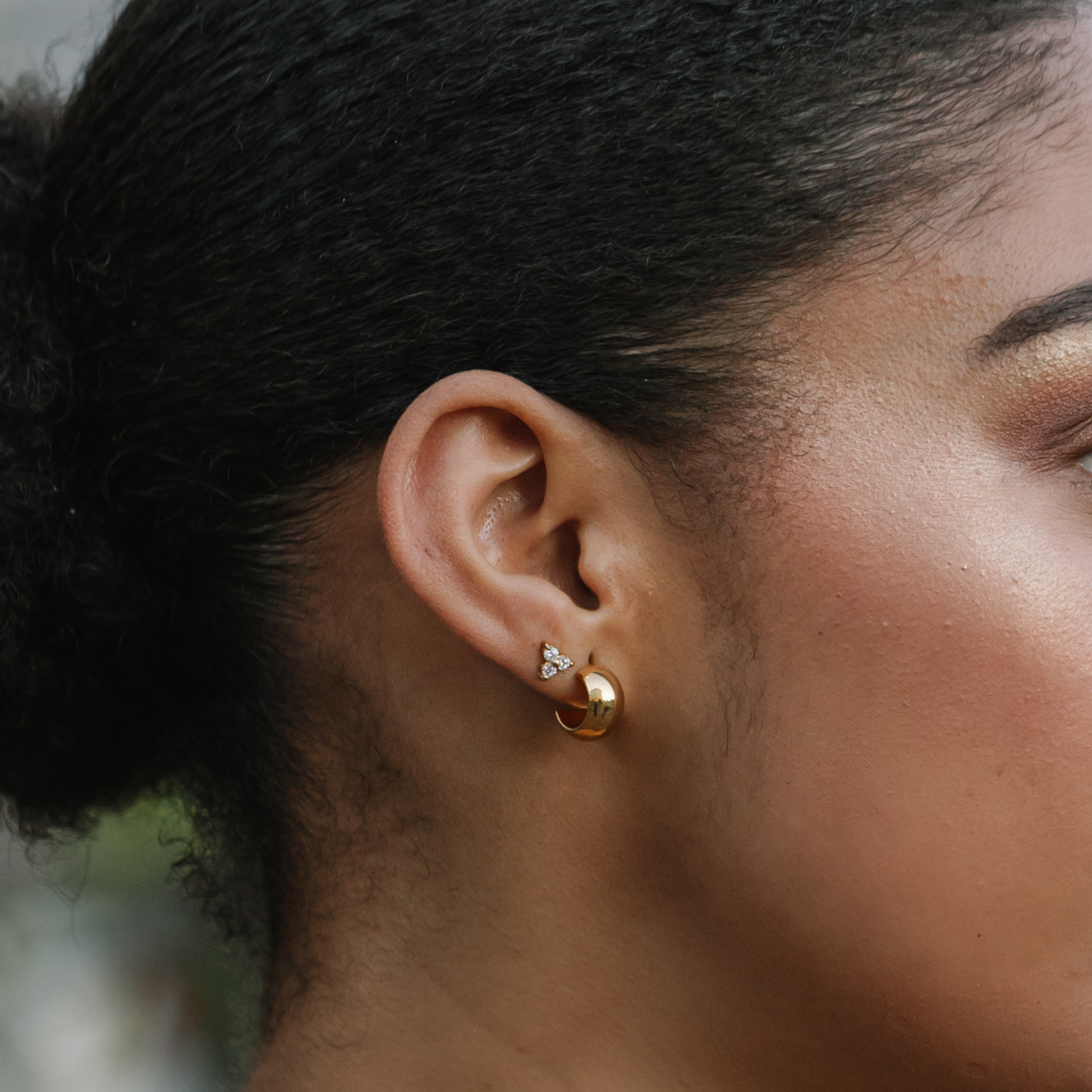 Three round stones stacked into a pyramid, forming a delicate trinity. Perfect for stacking or wearing solo for an elegant finish.